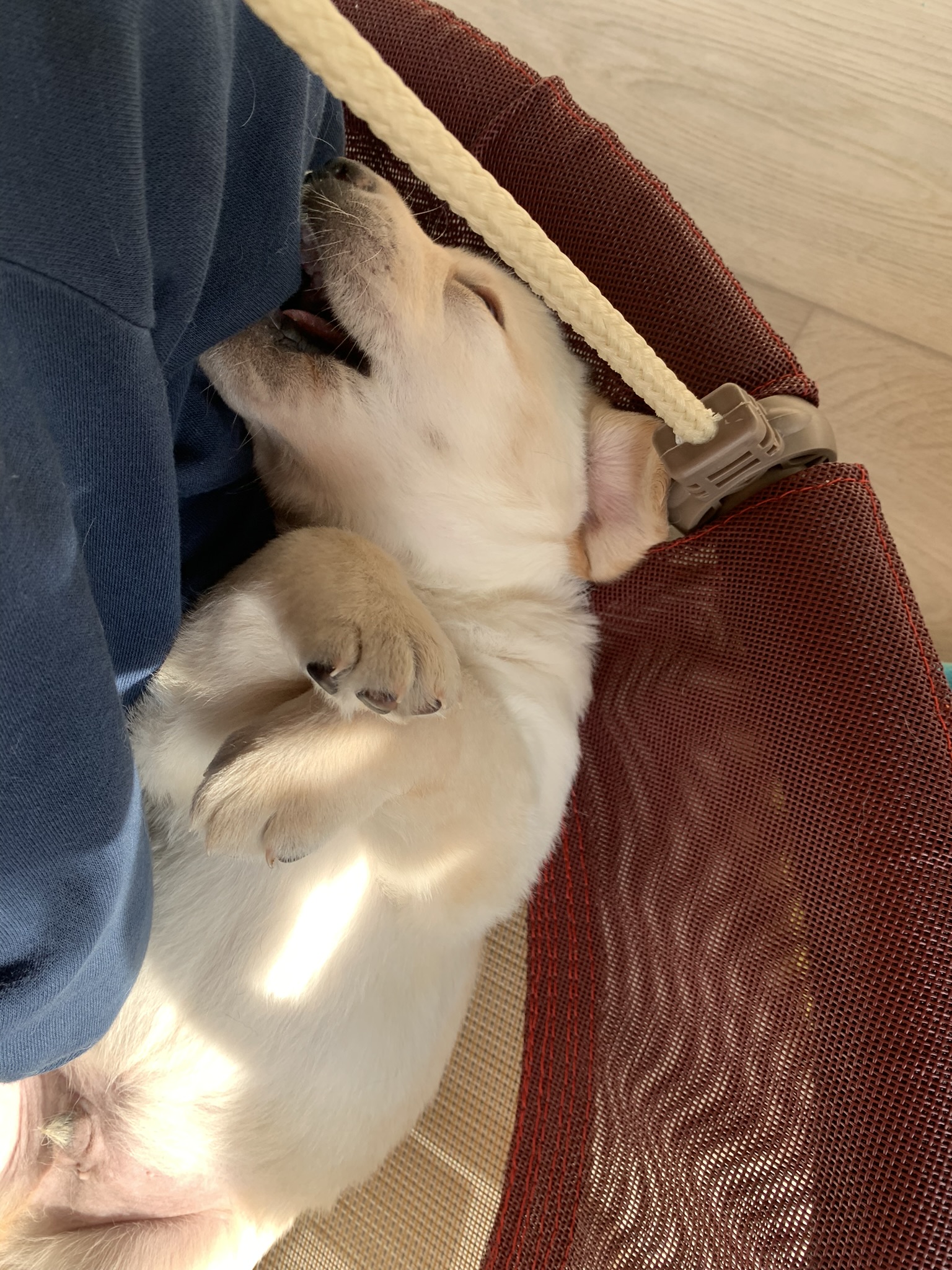 Die Welpen verbringen diese Zeit in der Wurfkiste, wo sie trinken, schlafen und wachsen. Wir kontrollieren täglich ihr Gewicht und beobachten aufmerksam ihre Entwicklung, damit sich jeder Welpe gesund und gleichmäßig entwickelt.