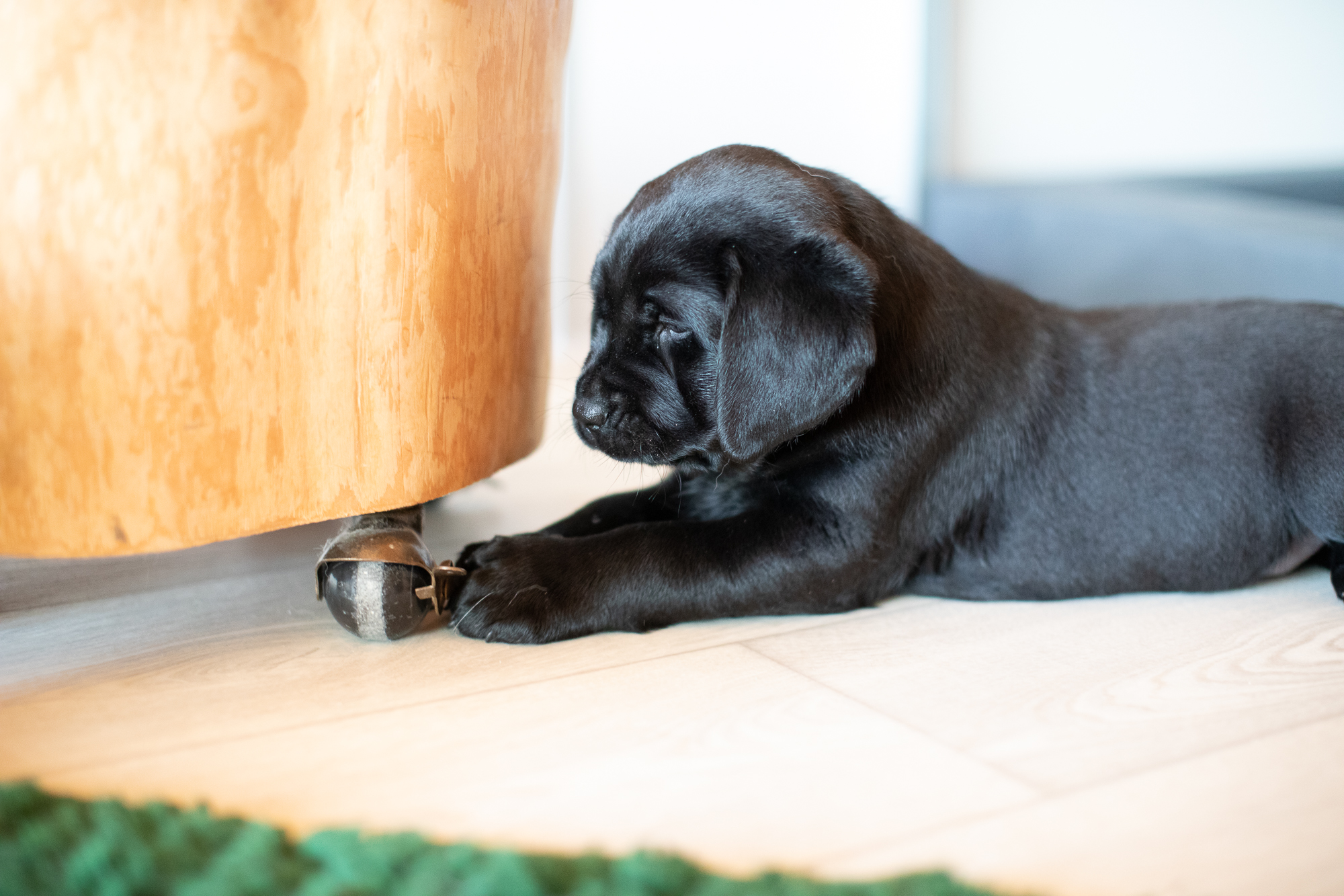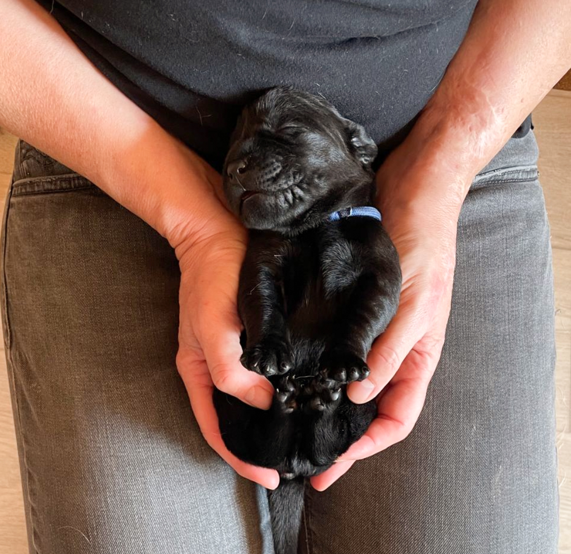 Diese Phase ist ein wichtiger Schritt in der Entwicklung, denn die Welpen lernen nun, ihre Umwelt bewusst wahrzunehmen und erste soziale Erfahrungen im Wurf zu sammeln. Damit beginnt bereits die behutsame Sozialisierung unserer Labrador Welpen.