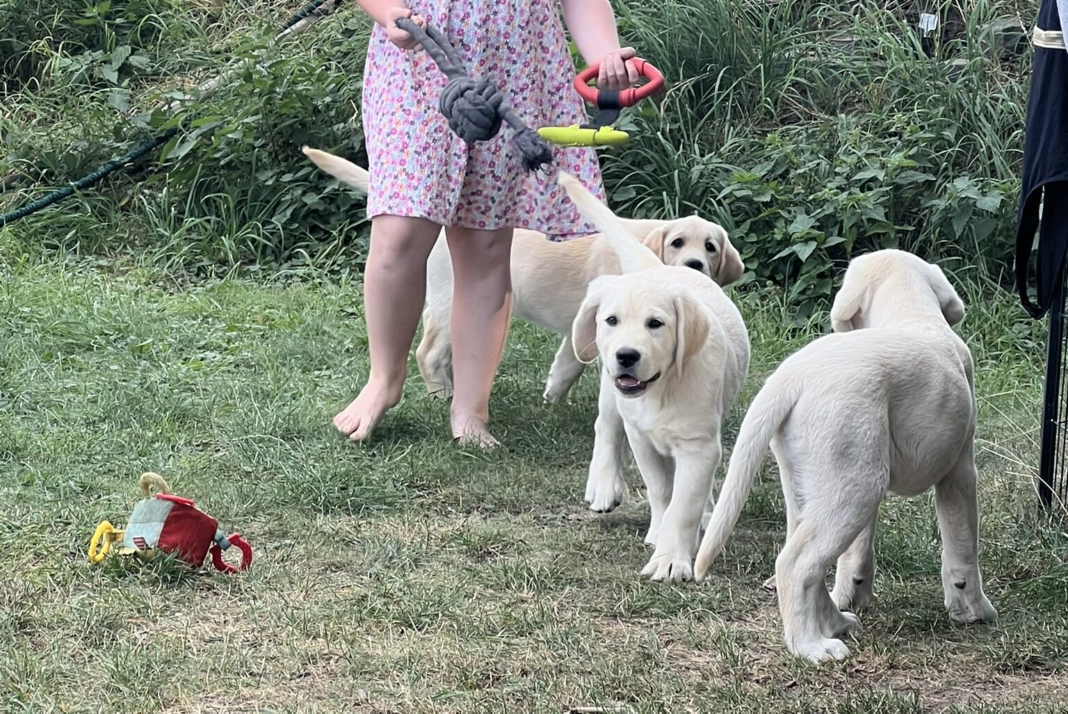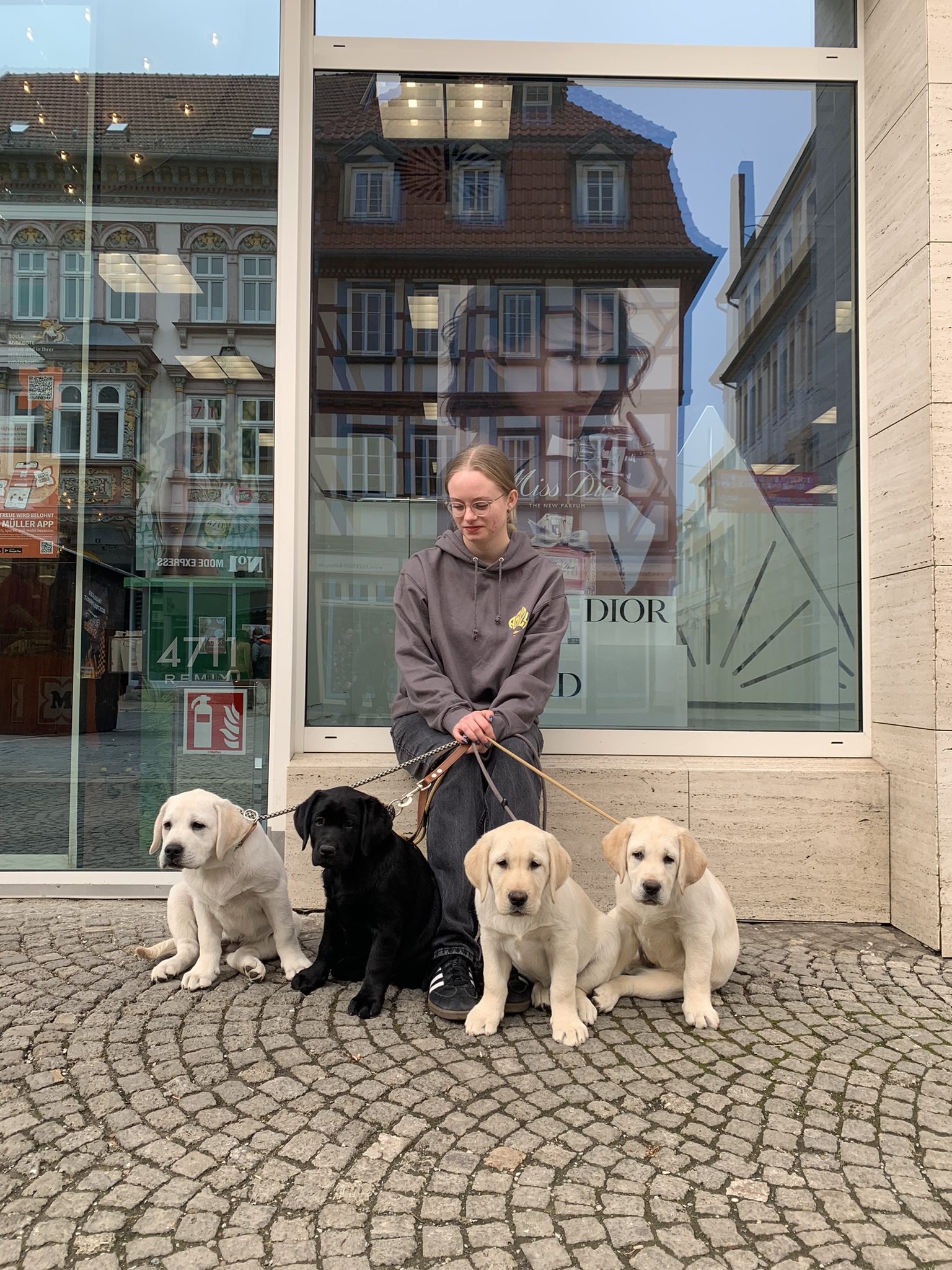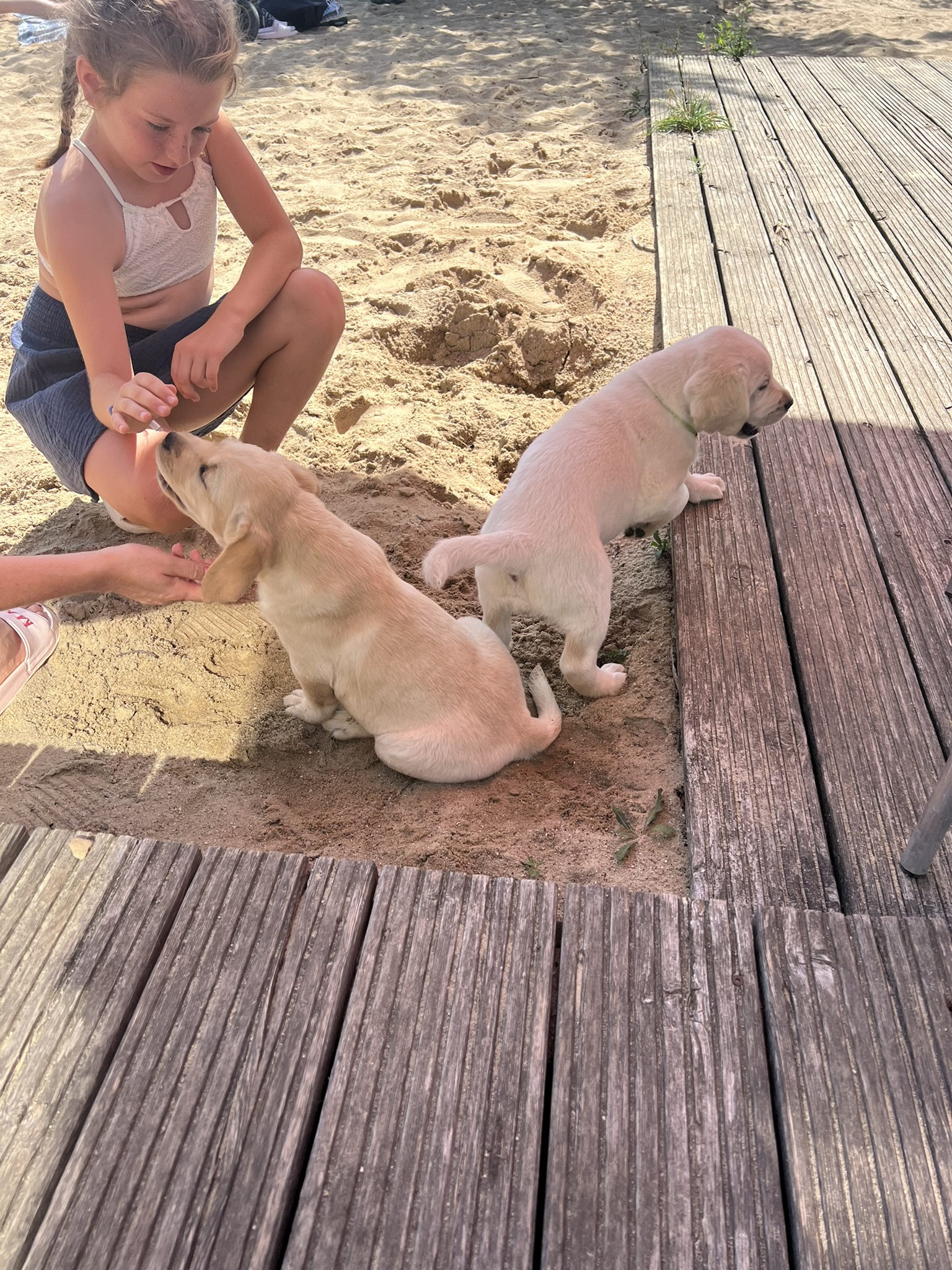Kurz vor dem Auszug sammeln unsere Labrador Welpen weitere wichtige Eindrücke. Sie lernen neue Situationen kennen, begegnen verschiedenen Menschen und erweitern abermals ihren Aktionsradius.